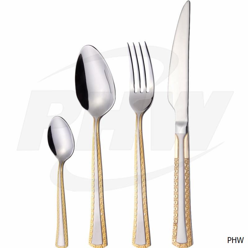STAINLESS STEEL CUTLERY MIRROR POLISHED WITH GOLD PLATED ELEGANCE DESIGN DISH WASHER SAFE