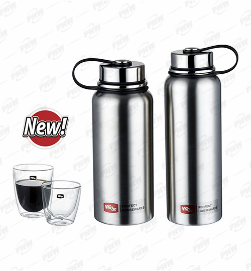 STAINLESS STEEL BODY, DOUBLE WALLED, UNBREAKABLE WITH PLASCTIC HEAD